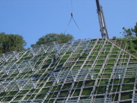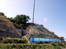アンカーにつなぐメインワイヤーの加工状況とパイ