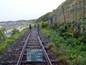 防護柵の解体作業は保線所の職員2名の元で行い、